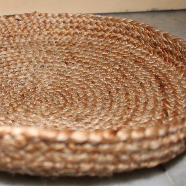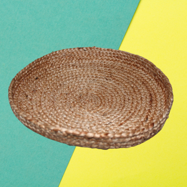 Jute oval basket with wood bottom made of plywood. The basket can also be used to store bread, pastries, spice jars.